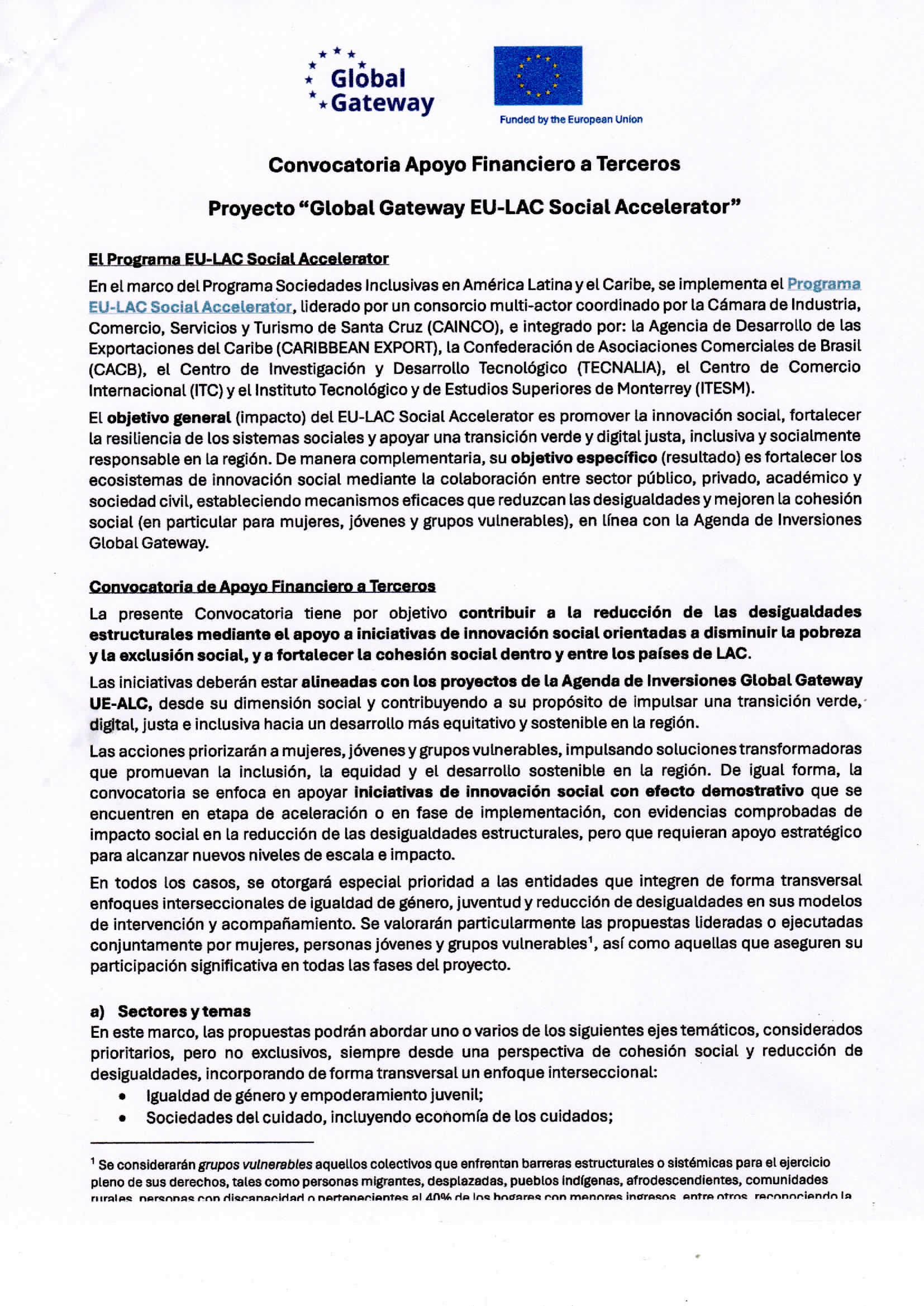 Convocatoria Apoyo Financiero a Terceros Proyecto “Global Gateway EU-LAC Social Accelerator”