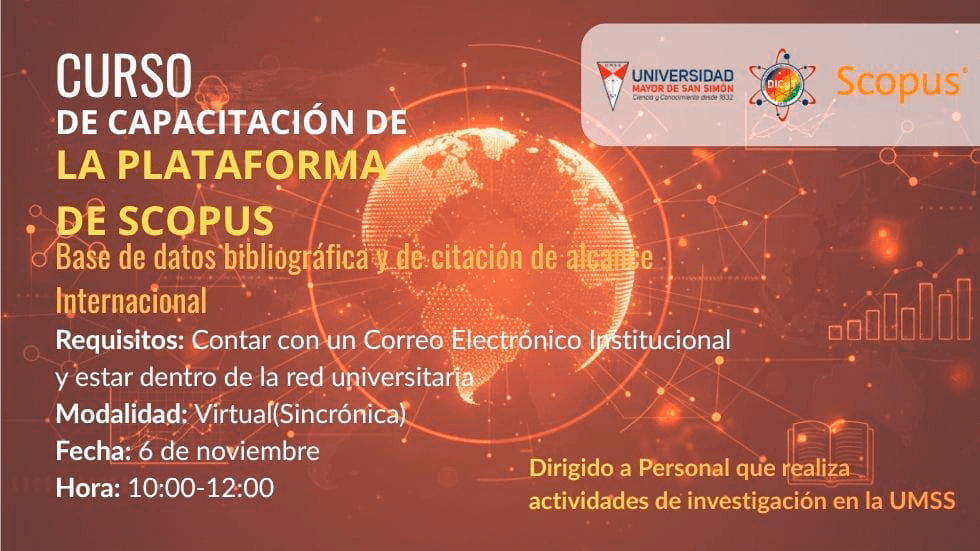 La Dirección de Investigación Científica y Tecnológica (DICyT) de la Universidad Mayor de San Simón (UMSS) se complace en anunciar la suscripción anual a la base de datos SCOPUS, una de las plataformas bibliográficas y de citación más reconocidas a nivel mundial.